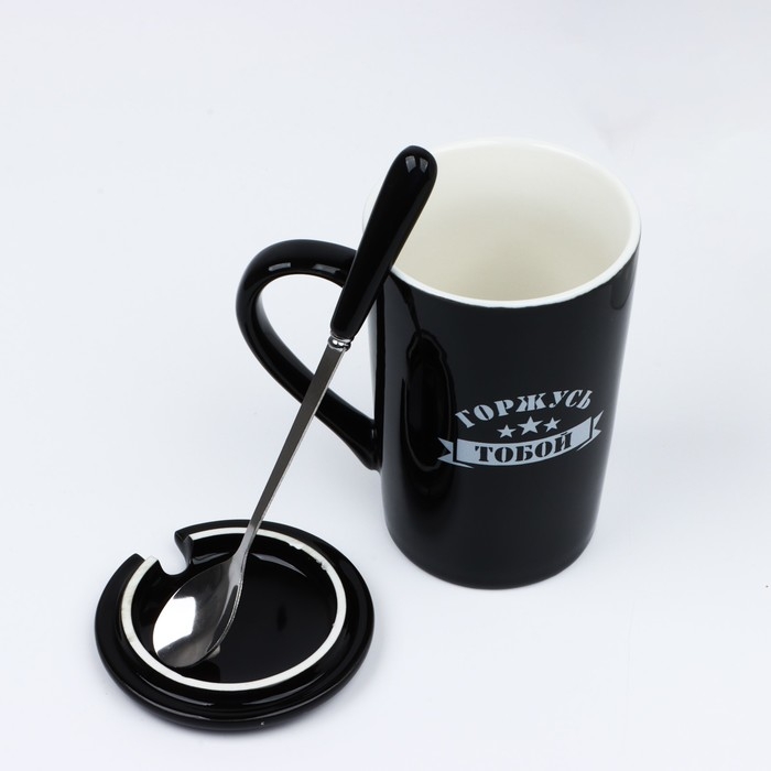 Кружка «Горжусь», 420 мл, с ложкой и крышкой
