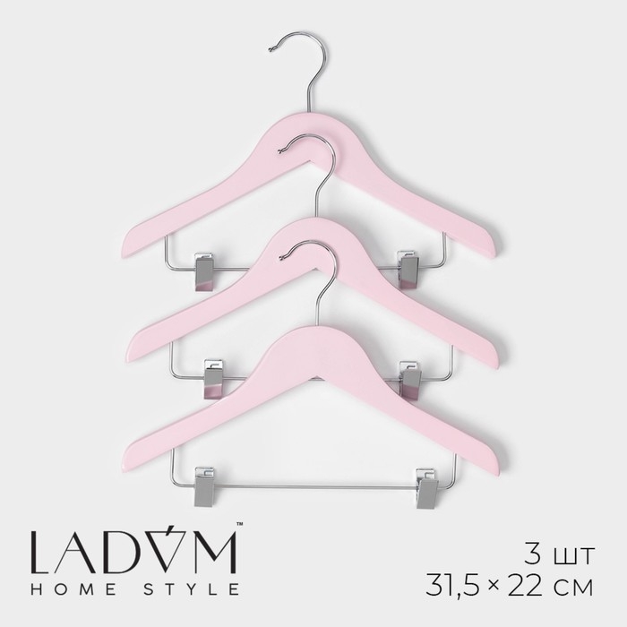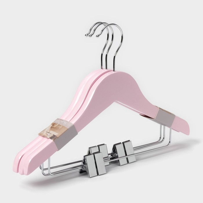 Вешалки плечики детские,с зажимом для брюк и юбок,дерево клен,цвет роз 31,5х1х22 см,3 шт