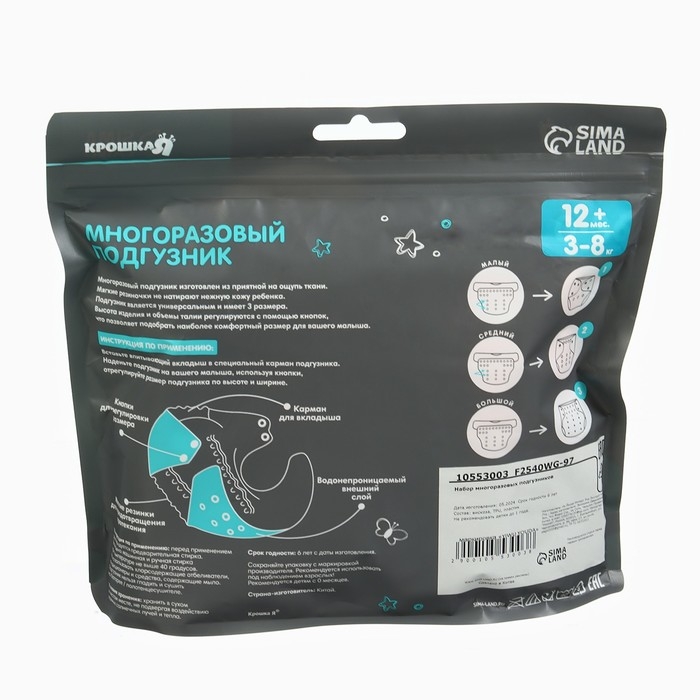 Набор многоразовых подгузников «Крабик», 3-8 кг, цвет белый, оранжевый, 2 шт., Крошка Я