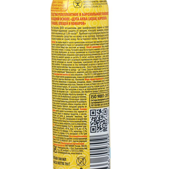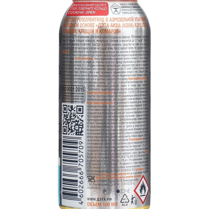 Аэрозоль репеллентный от мошек, клещей и комаров "ДЭТА АКВА", флакон, 100 мл
