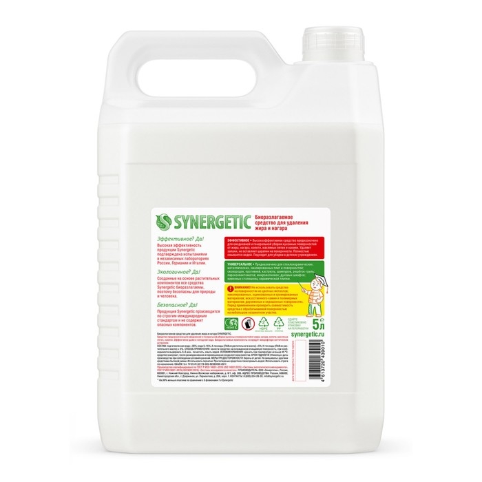 Биоразлагаемое средство для плит от жира и нагара SYNERGETIC - высокоэффективное щелочное средство для удаления жира, нагара, копоти, масляных пятен и накипи с плит и других кухонных поверхностей.