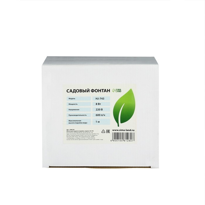 Фонтан садовый HJ-743, 8 Вт, h = 1 м, 600 л/ч, шнур 5 м