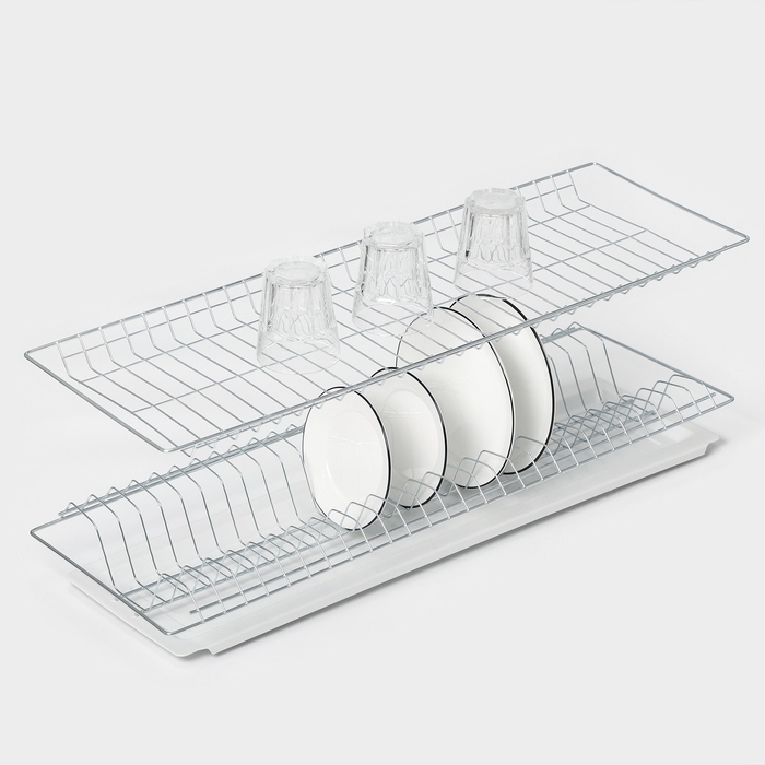 Сушилка для посуды с поддоном 2-х ярусная, настольно-настенная, 39,5×25×38 см, цвет хром