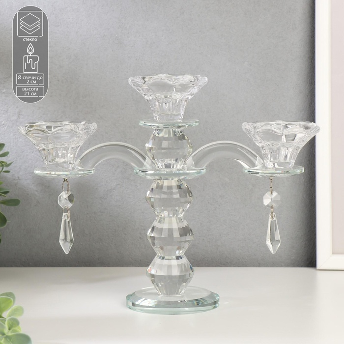 Подсвечник стекло на 3 свечи "Канделябр" 21х23,5х7,8 см
