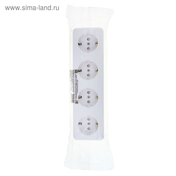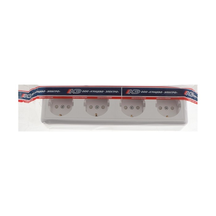 Розетка "Кунцево" Оптима, четырехместная, 16 А, 250 В, с з/к, наружная, со шторками, белая