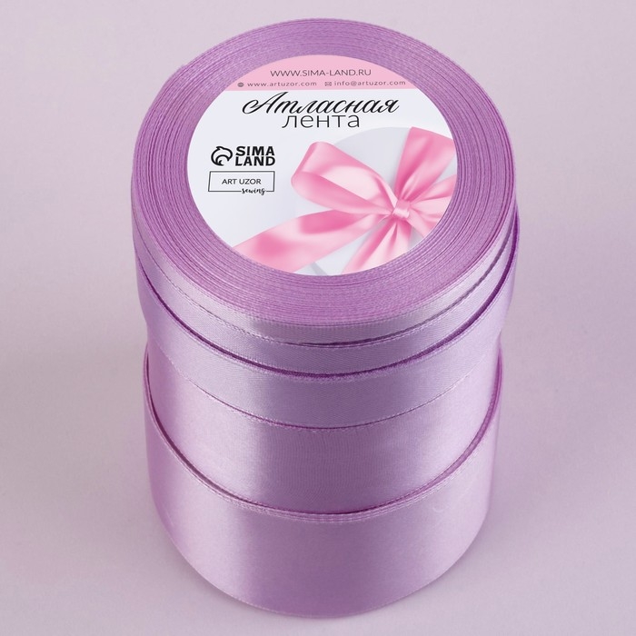 Набор атласных лент, 5 шт, размер лент: 6/10/20/40/50 мм × 23 ± 1 м, цвет сиреневый