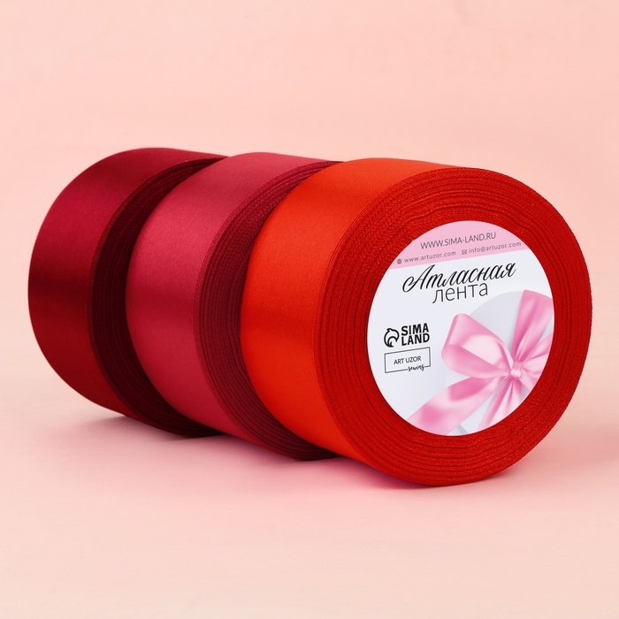 Набор атласных лент, 3 шт, размер 1 ленты: 50 мм × 23 ± 1 м, цвет красный спектр