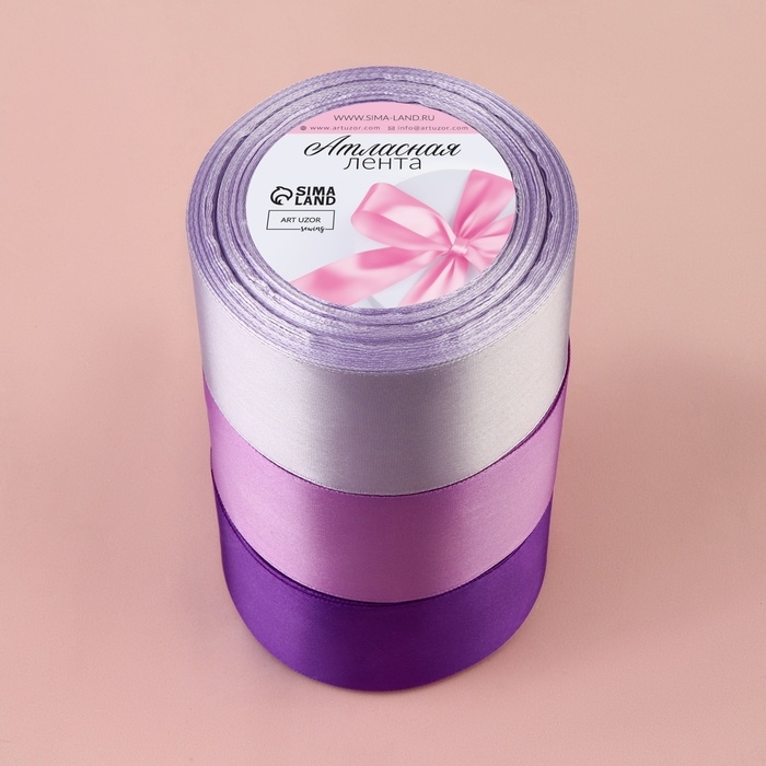 Набор атласных лент, 3 шт, размер 1 ленты: 50 мм × 23 ± 1 м, цвет фиолетовый спектр