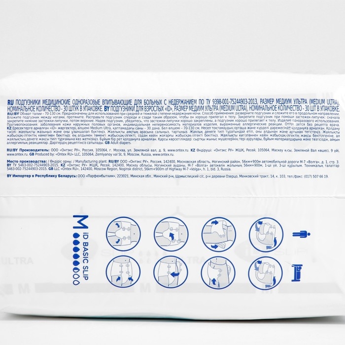 Подгузники для взрослых iD Slip Basic, размер M, 30 шт.
