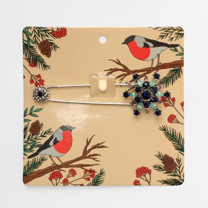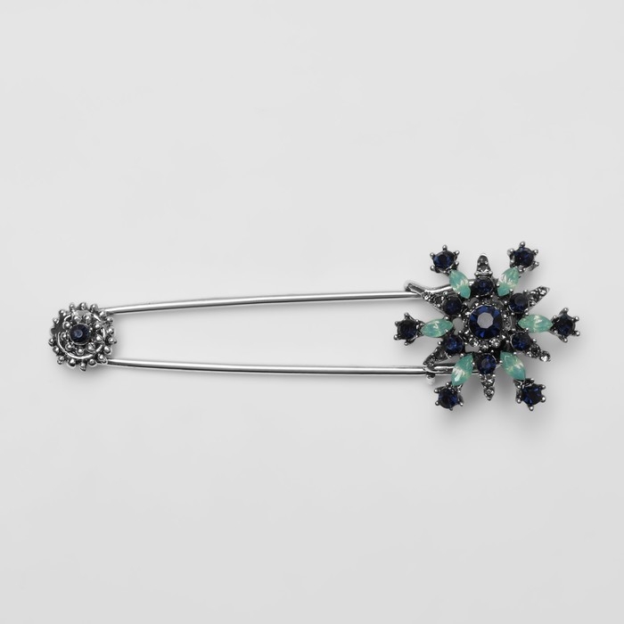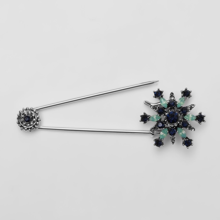 Булавка «Снежинка рождественская» оригинальная, 7,5 см, цвет синий в чернёном серебре