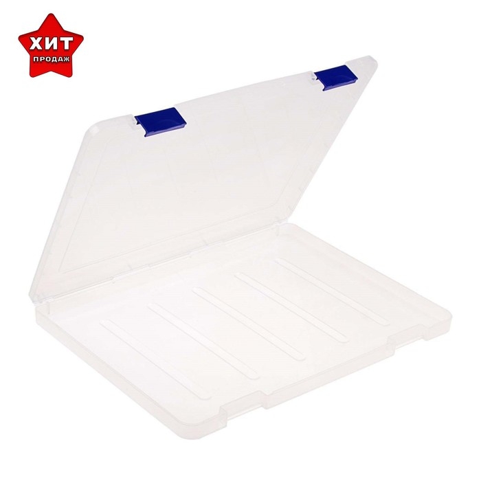 - На прозрачном корпусе две надёжные синие защёлки.