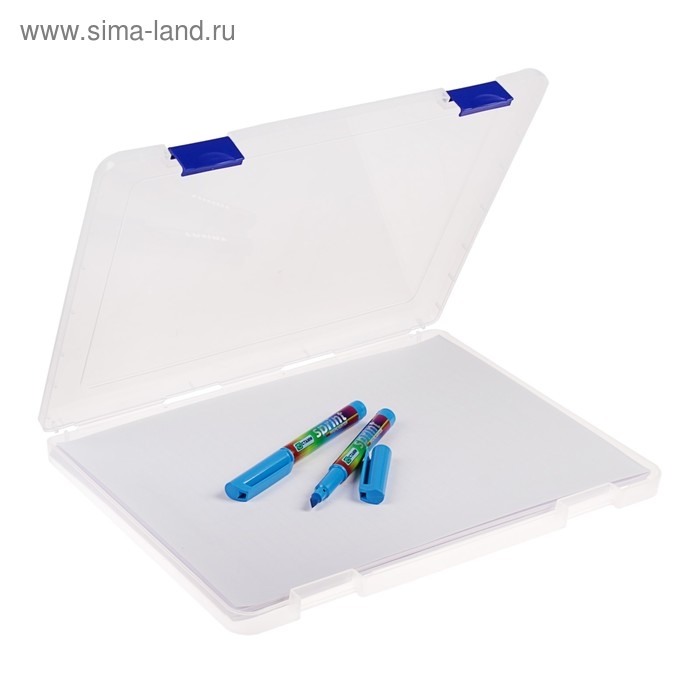 Папка для документов А4, с синими защелками, 230 х 305 х 40 мм, прозрачный корпус