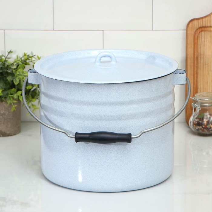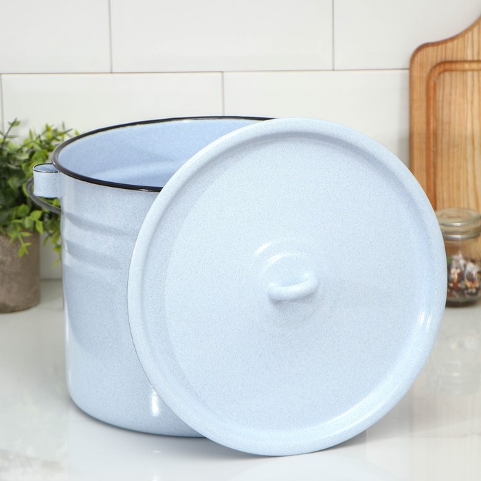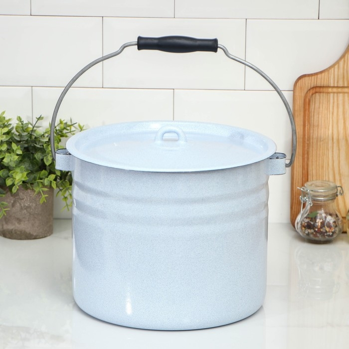 Ведро эмалированное, 12 л, с крышкой, цвет голубой