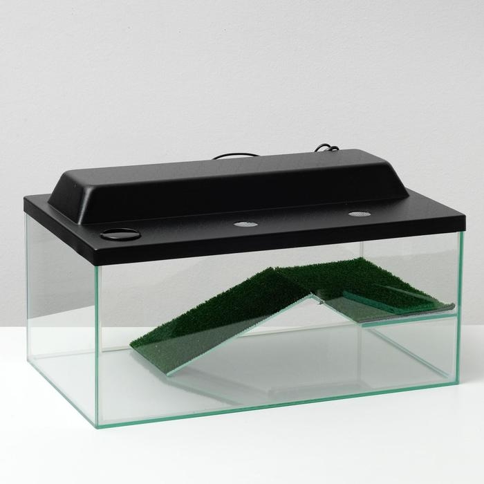 Террариум для черепах 45 литров, с крышкой, полкой и лесенкой, 55 х 33 х 25 см
