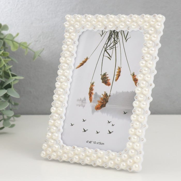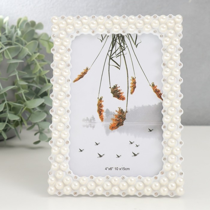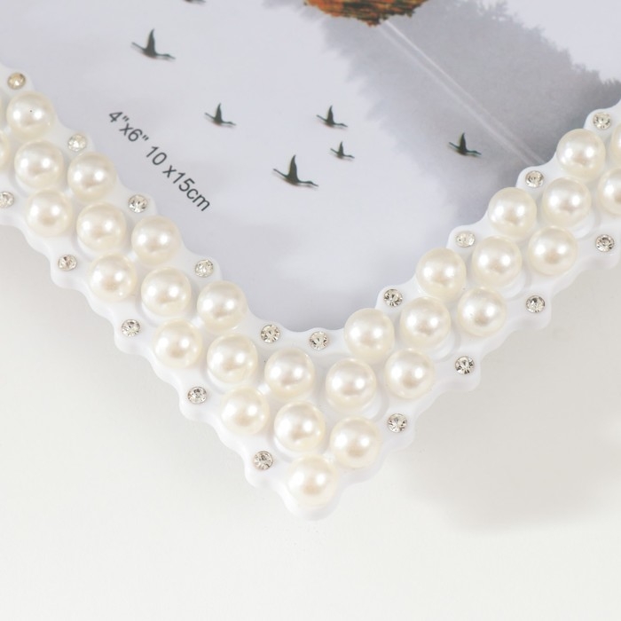 Фоторамка пластик 10х15 см "Жемчуг и стразы" прямые углы 17,5х12,5 см