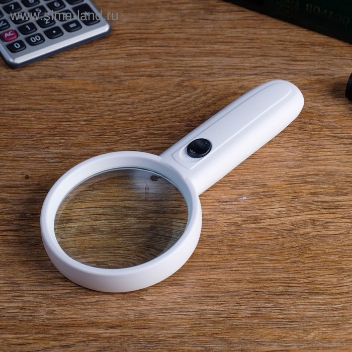 Лупа 3х, d=8см, с подсветкой, 2 ААА, белая
