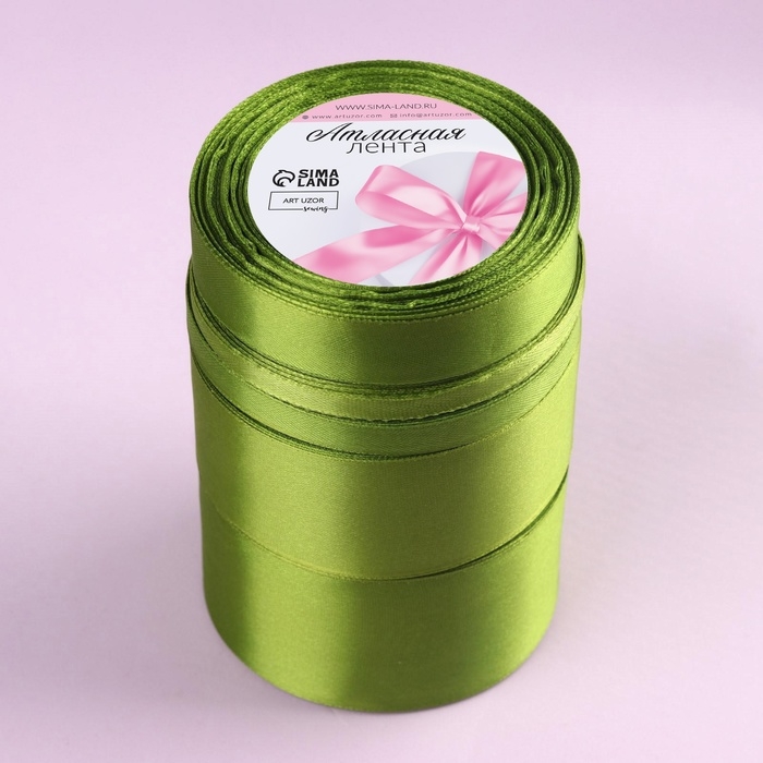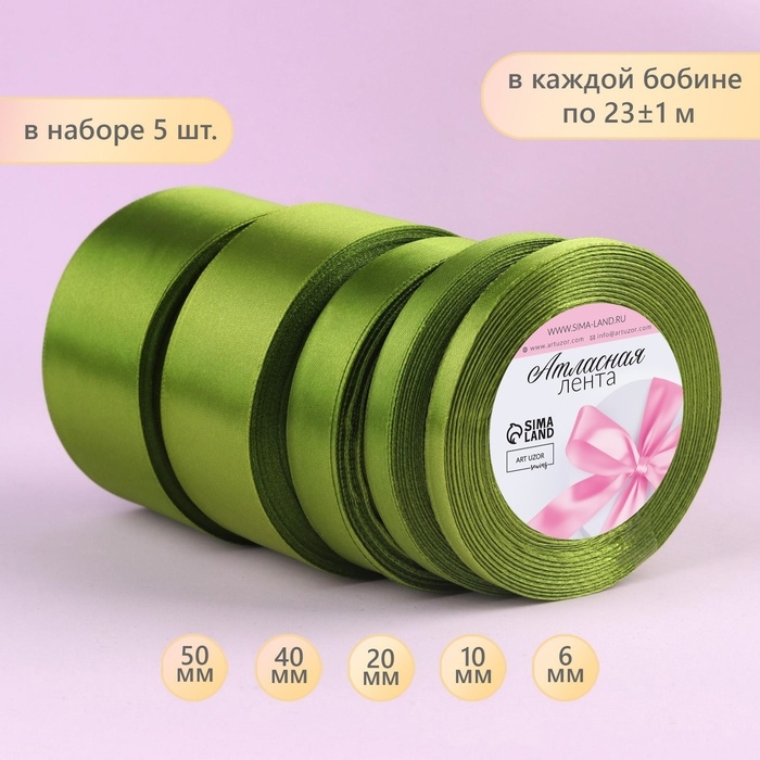 Набор атласных лент, 5 шт, размер лент: 6/10/20/40/50 мм × 23 ± 1 м, цвет травяной