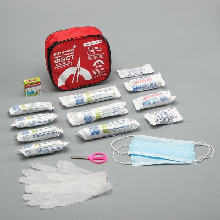 Автомобильная аптечка первой помощи "ФЭСТ" состав 2024, мягкий футляр