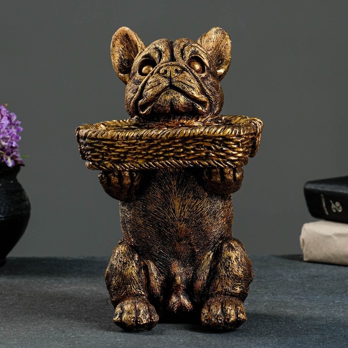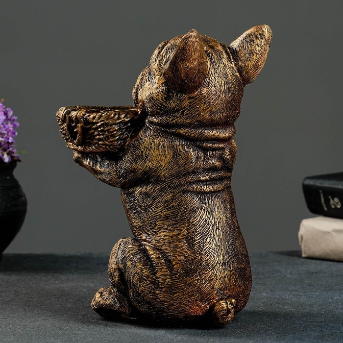 Подставка конфетница "Собака с корзинкой" бронза, 24х15х17см