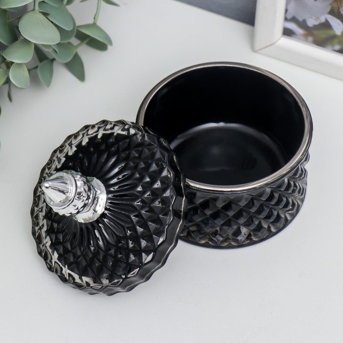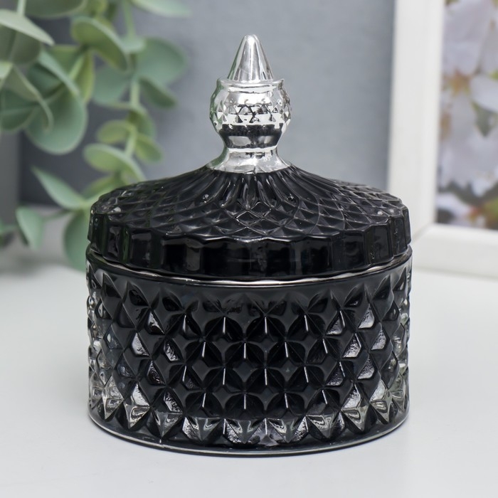 Шкатулка стекло "Ромбы и купол" чёрный с серебром 11х8,5х8,5 см