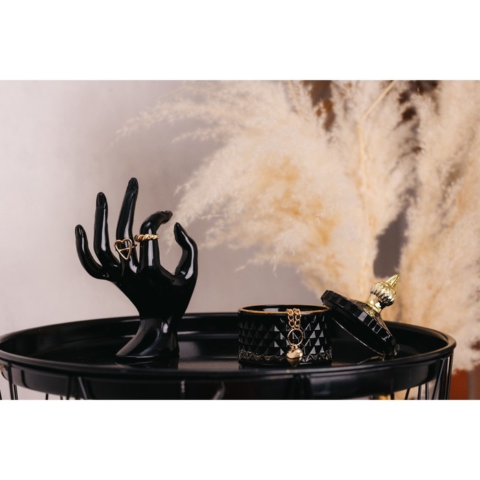 Шкатулка стекло "Ромбы и купол" чёрный с золотом 11х8,5х8,5 см