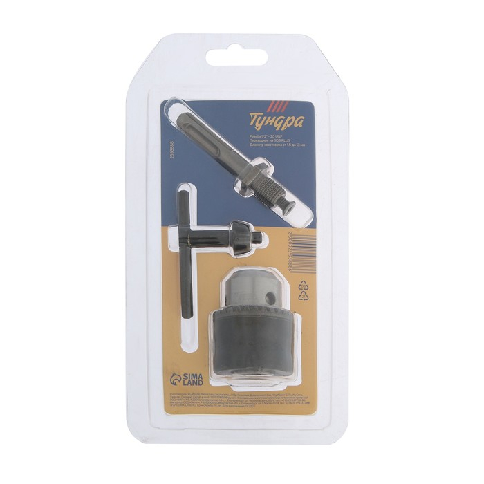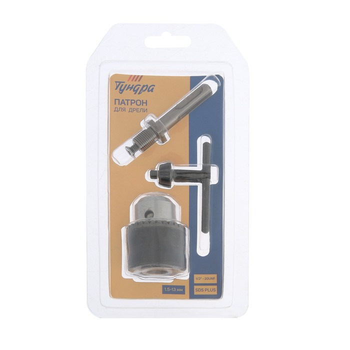 Набор для дрели ТУНДРА, переходник SDS-plus, патрон 1/2" - 20 UNF 1.5 - 13 мм