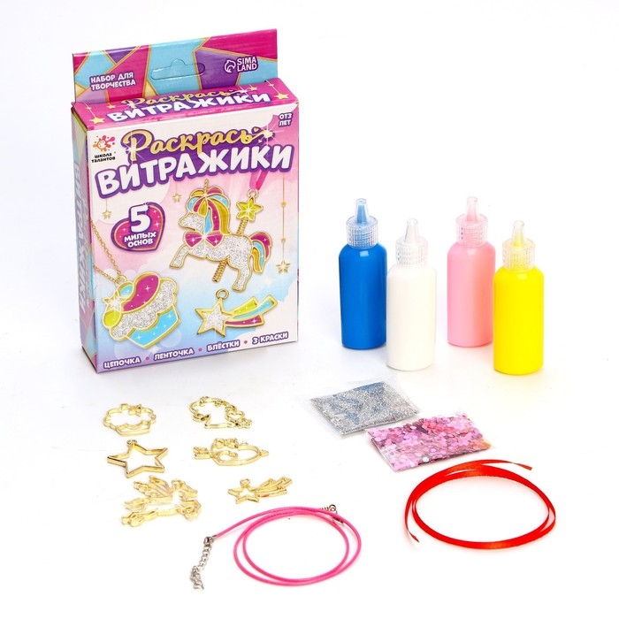 Набор для творчества «Раскрась витражики» поможет ребёнку создать витражные подвески, из которых можно сделать ожерелье, браслет или брелок.