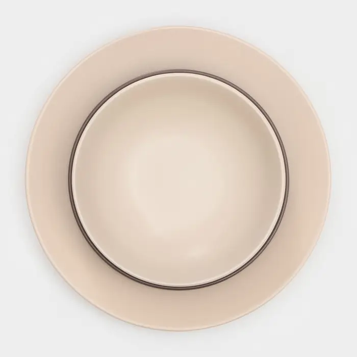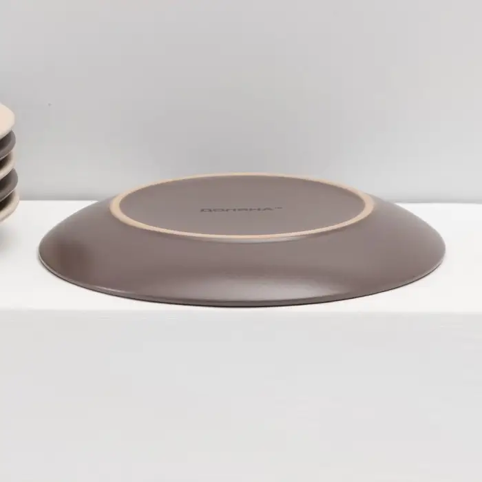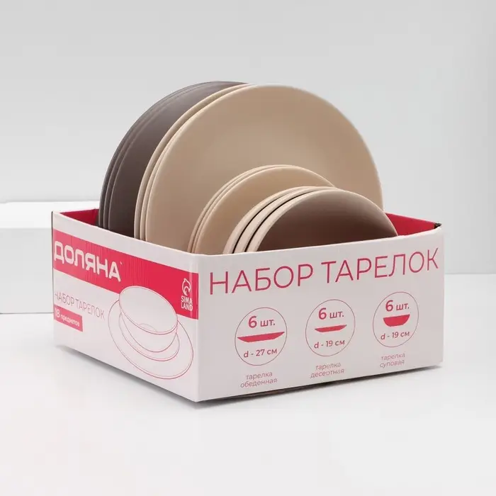 Набор тарелок керамических Доляна «Пастель», 18 предметов: 6 тарелок d=19 см, 6 тарелок d=27 см, 6 мисок d=19 см, цвет коричневый