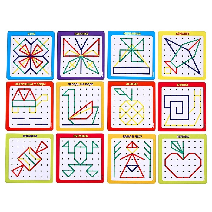 Геоборд «Математический планшет: весёлые картинки» с инструкцией по схемам, цвета МИКС, по методике Монтессори