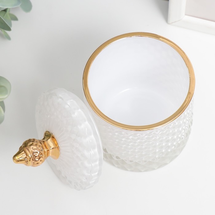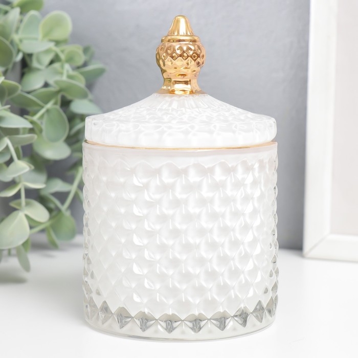 Шкатулка стекло "Ромбы и купол" белый с золотом 14х8,2х8,2 см