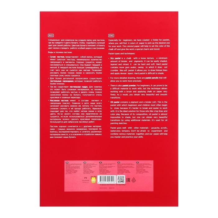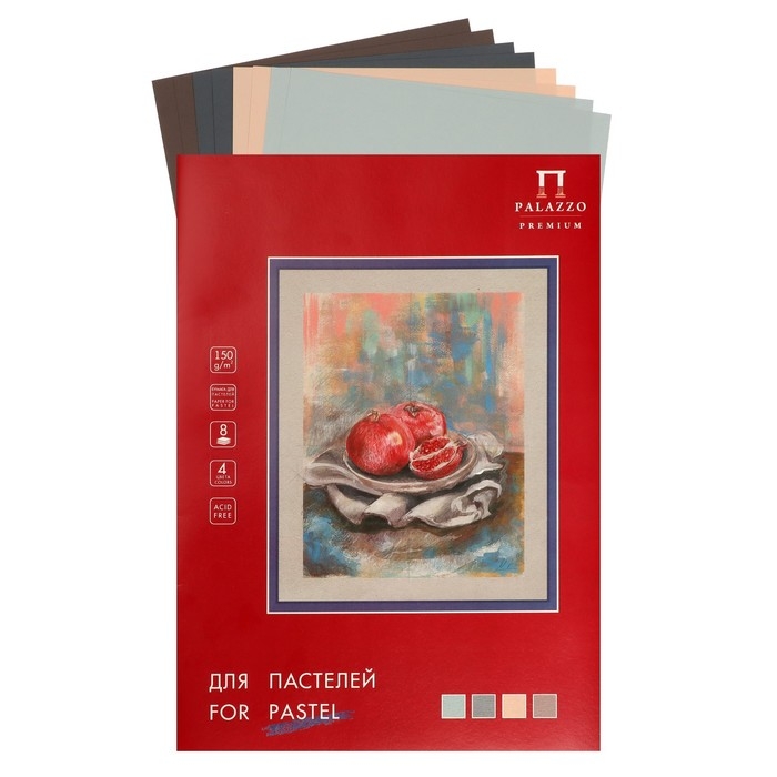 Специально для новичков мы создали папку для пастелей, где вы найдете 4 цвета бумаги (бирюзовый, серый, бежевый, коричнево-серый), чтобы подобрать нужный цвет для своей работы. Цветная бумага поможет оттенить цвет мелка и придать работе особый шарм и настроение. Пастель хорошо сочетается и с другими материалами – гуашью, акрилом, акварелью, темперой. Не бойтесь экспериментировать и сочетать различные материалы вместе, а в освоении и отработки навыка вам поможет наша бумага.