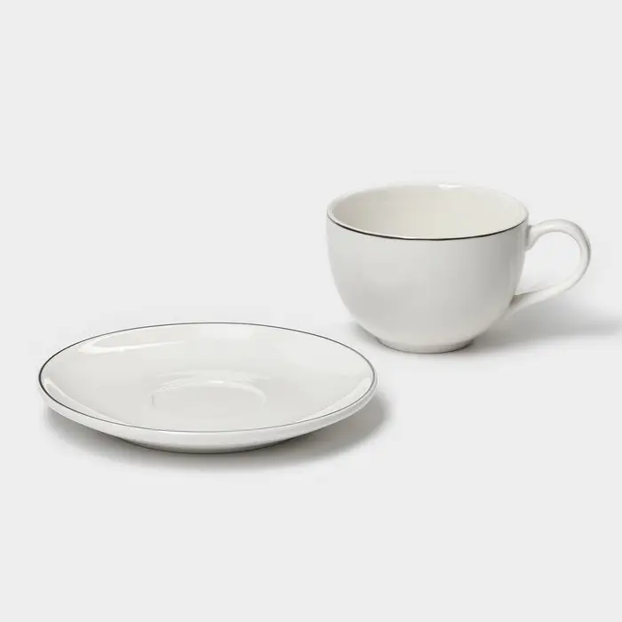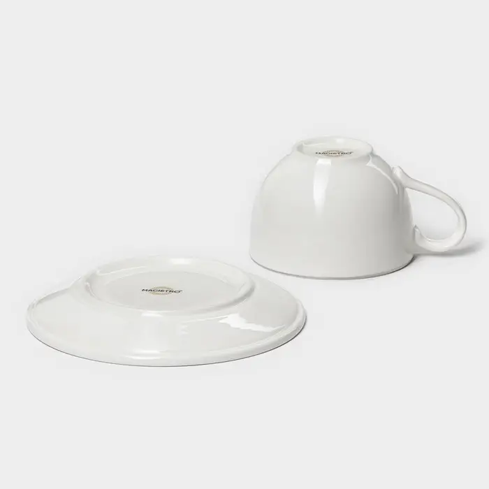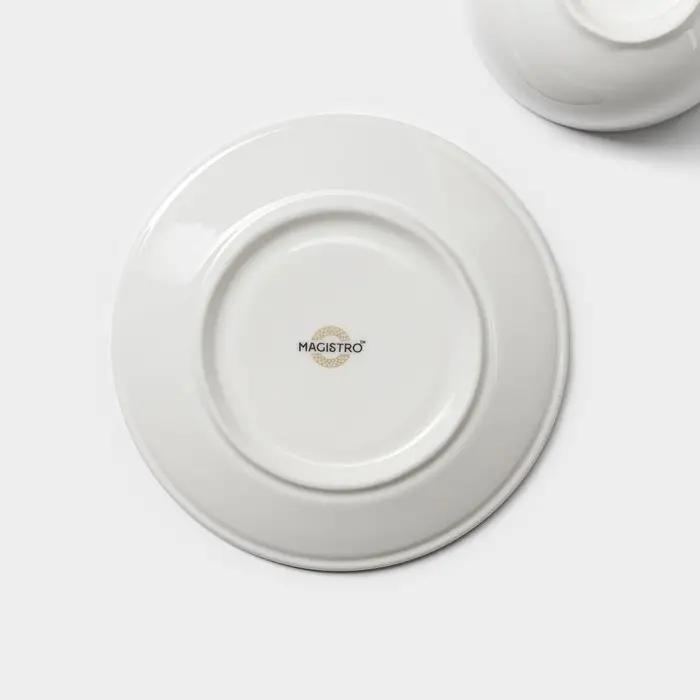 Чайная пара фарфоровая Magistro La Perle, 2 предмета: чашка 230 мл, блюдце d=15 см, цвет белый
