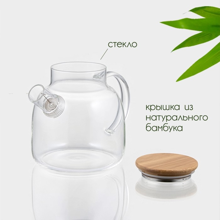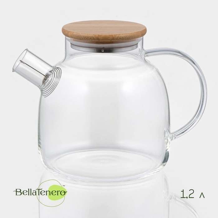 Чайник заварочный стеклянный с бамбуковой крышкой и металлическим фильтром BellaTenero «Эко», 1,2 л