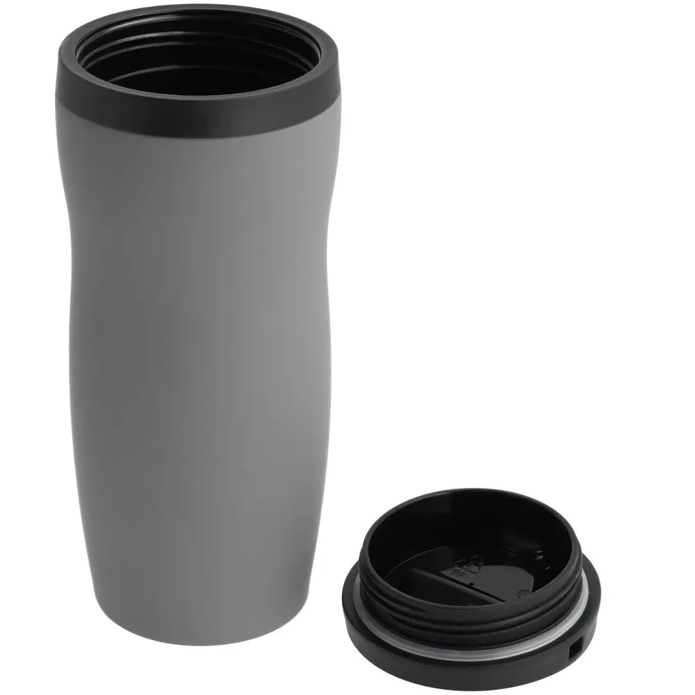 Двухслойная конструкция из нержавеющей стали снаружи и пищевого пластика внутри. Герметичная завинчивающаяся крышка с откидным клапаном для питья. Покрытие софт-тач. В отверстие в крышке можно вставить шнурок для удобного ношения стакана на руке. Шнурок в комплект не входит.