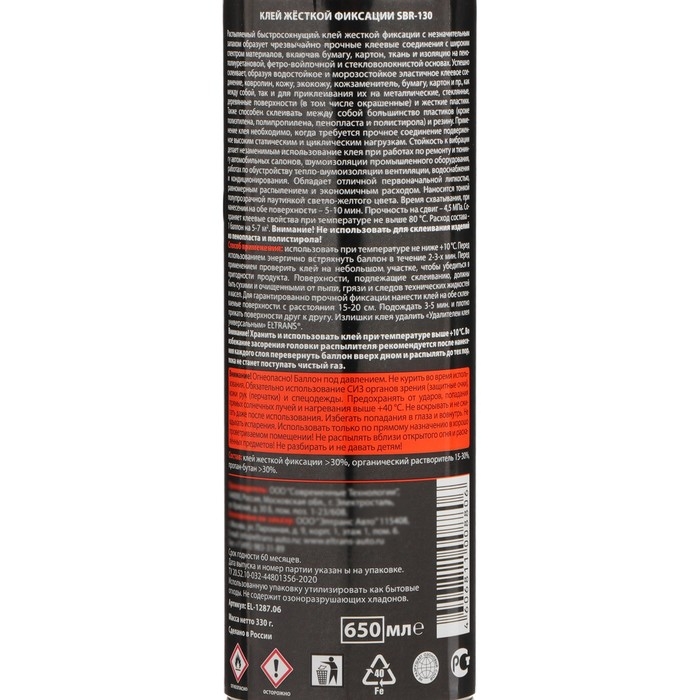 Клей жесткой фиксации Элтранс SBR-130, 650 мл, аэрозоль EL-1287.06
