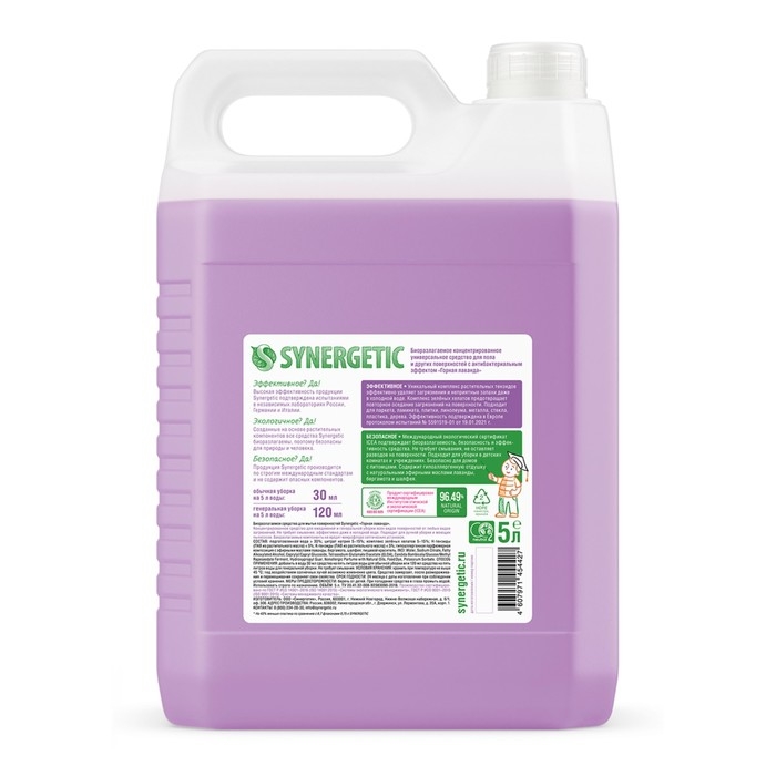 Биоразлагаемое концентрированное средство с антибактериальным эффектом SYNERGETIC "Горная лаванда" - универсальное средство для ежедневной и генеральной уборки пола и других поверхностей: столов, стен, потолка.