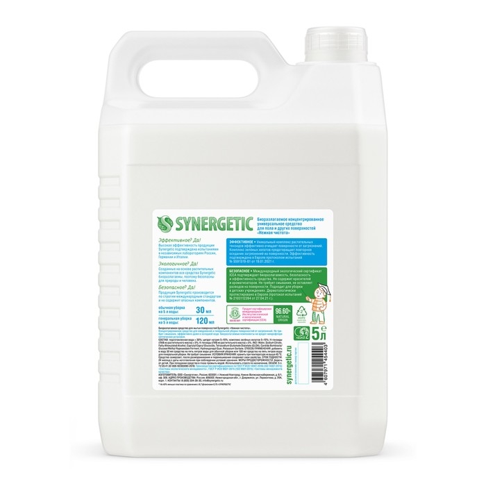 Биоразлагаемое концентрированное средство SYNERGETIC "Нежная чистота" - универсальное средство для ежедневной и генеральной уборки пола и других поверхностей: столов, стен, потолка.
