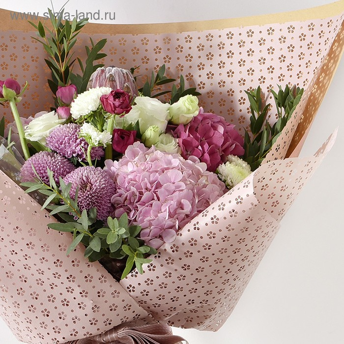 Фетр ламинированный с перфорацией "Цветочки", розовый, 57 см х 5 м
