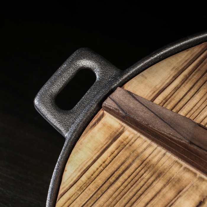 Сковорода-ВОК чугунная Magma «Хемминг», 31×8 см, с деревянной крышкой, индукция, цвет чёрный