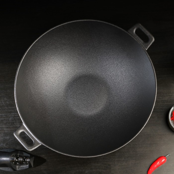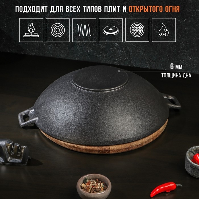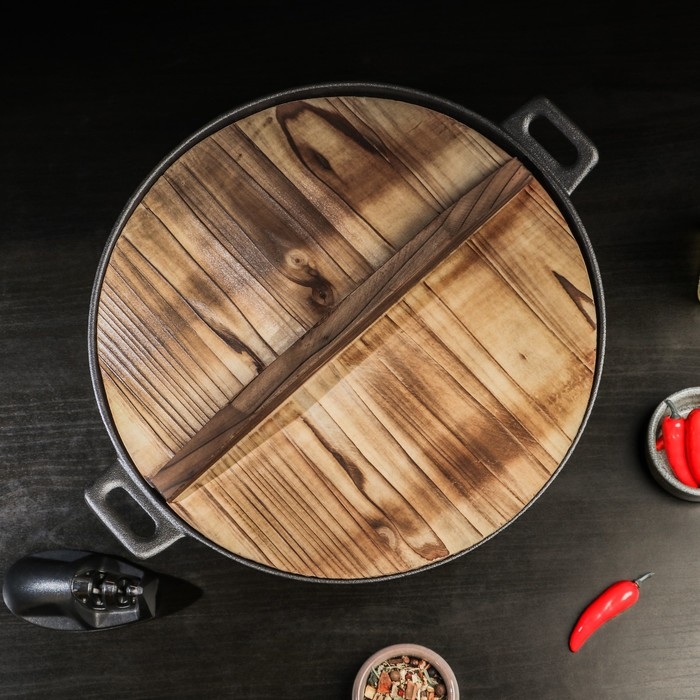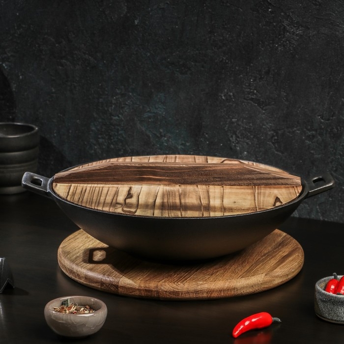 Сковорода-ВОК чугунная Magma. В комплекте идёт деревянная крышка.