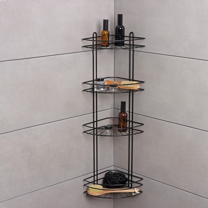 Угловая 4-х ярусная полка — удобный и вместительный аксессуар для ванной комнаты. Подходит для хранения небольших полотенец, косметических и хозяйственных средств.