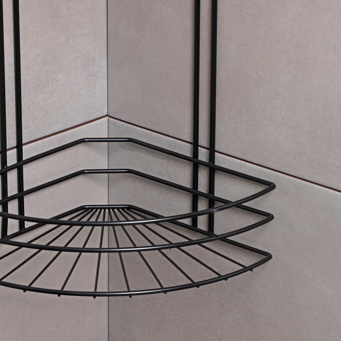 Полка для ванной угловая 3-х ярусная, 20×20×66 см, цвет чёрный