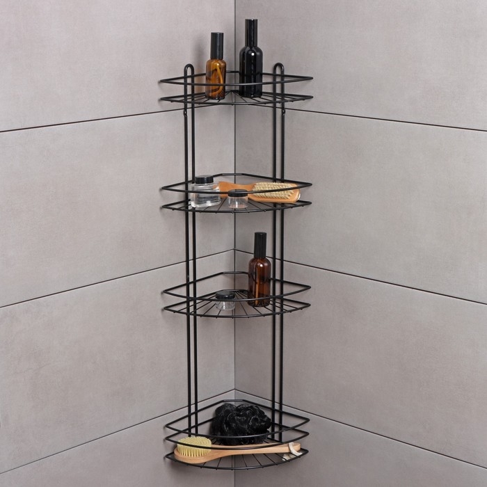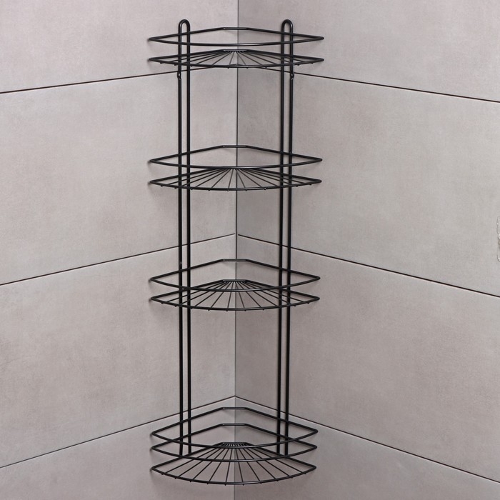 Полка угловая для ванной 4-х ярусная Native, 175×175×762 мм, цвет черный матовый
