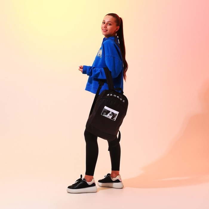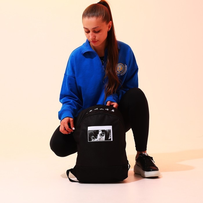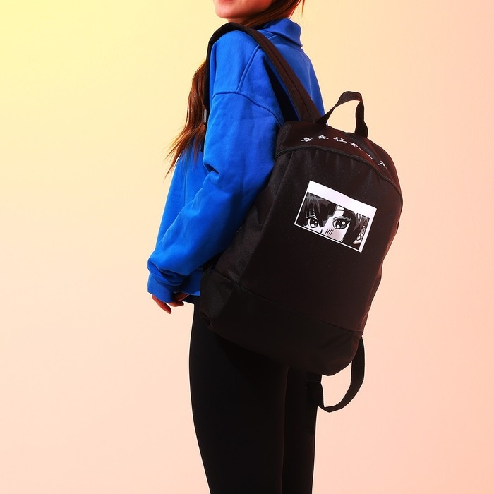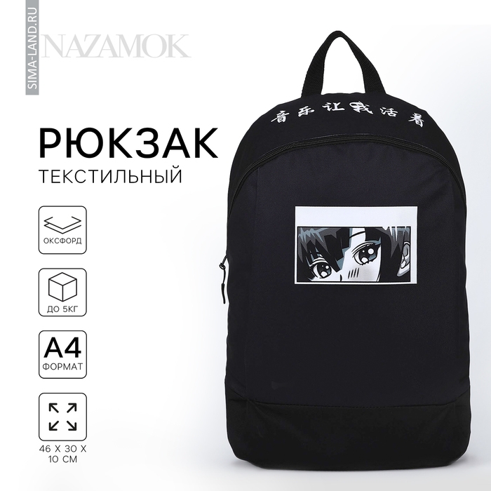 Рюкзак школьный текстильный «Аниме», 46х30х10 см, вертикальный карман, цвет чёрный