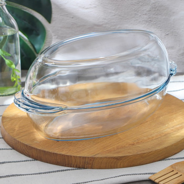 Утятница овальная из жаропрочного стекла Borcam, 2 л, с крышкой-формой для запекания