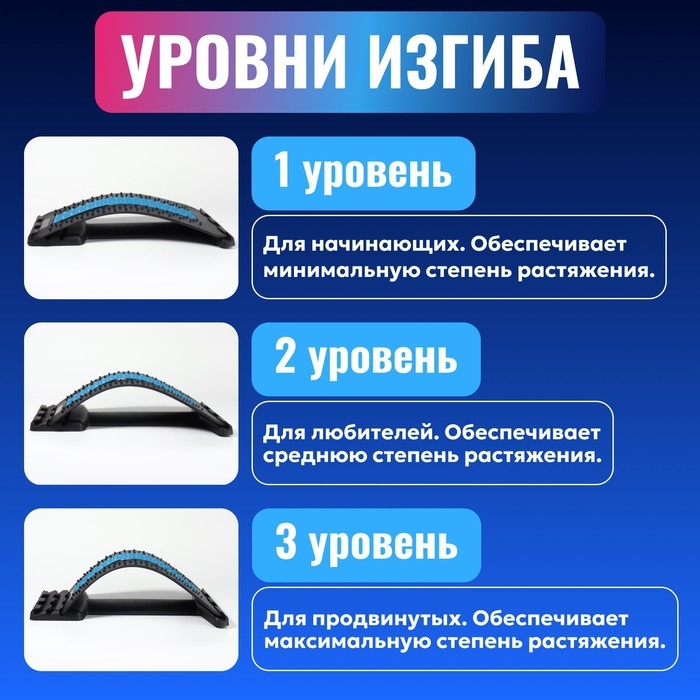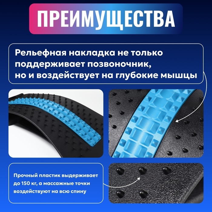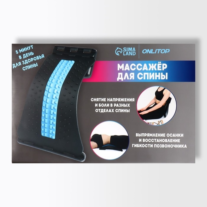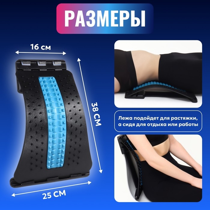 Массажёр для спины, трёхуровневый, 38 × 25 × 4 см, цвет синий