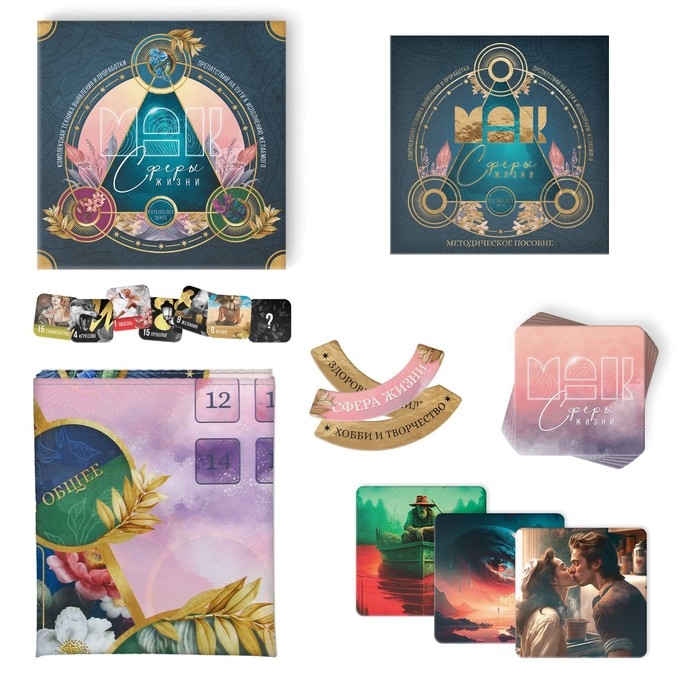 Трансформационная игра «Сферы жизни», 60 карт (9х9 см), 36 жетонов (3х3 см и 3,5х10 см), игровое поле (50х50 см),16+