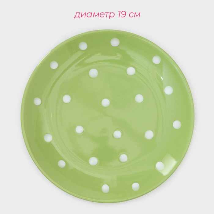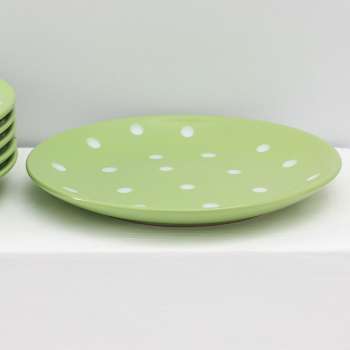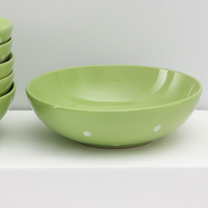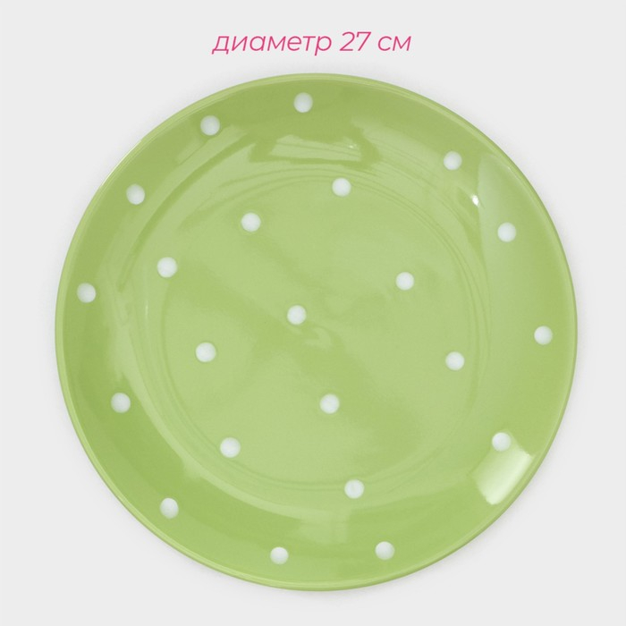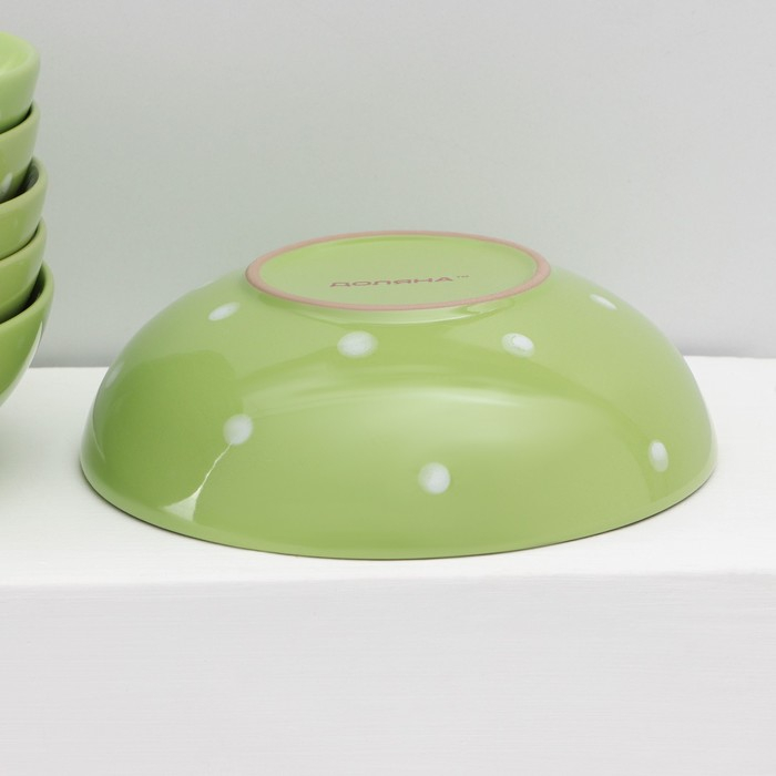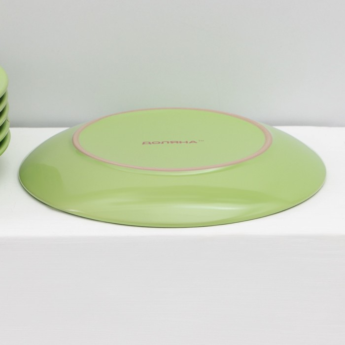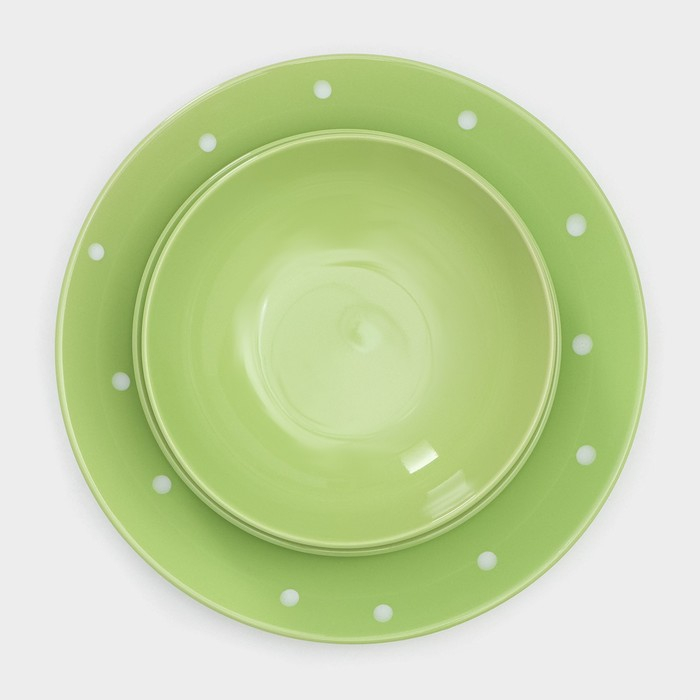 Набор тарелок керамических Доляна «Зелёный горох», 18 предметов: 6 тарелок d=19 см, 6 тарелок d=27 см, 6 мисок d=19 см, цвет зелёный