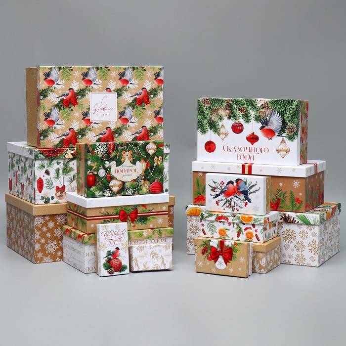 Набор коробок подарочных 15 в 1 «С Новым годом!», 12 х 6.5 х 4 см - 46.5 х 30 х 17.5 см, Новый год