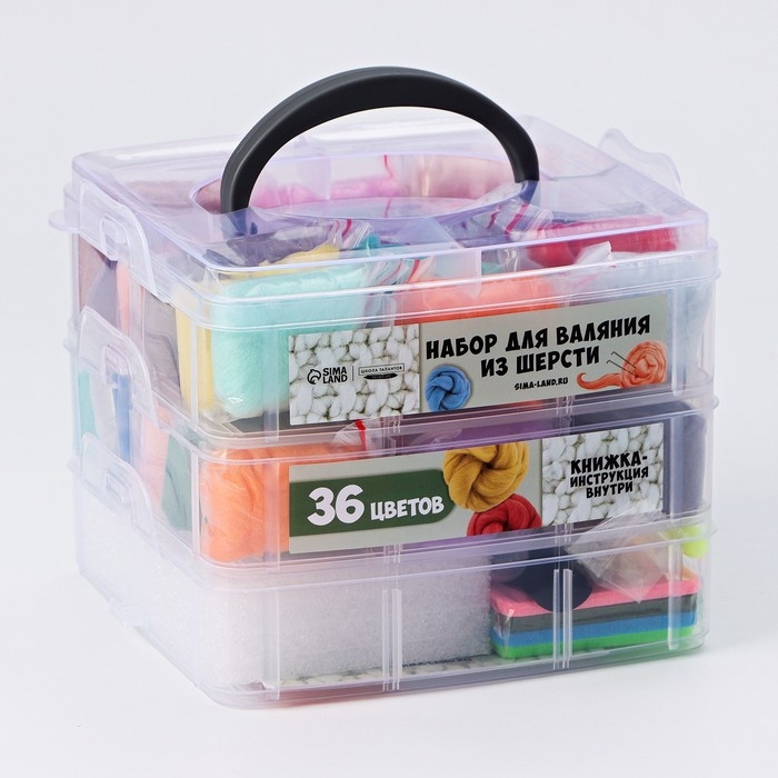 Набор для валяния из шерсти в контейнере, 36 цветов